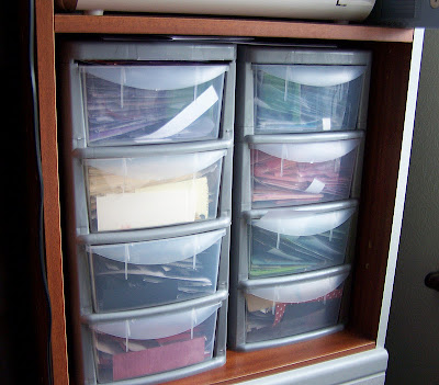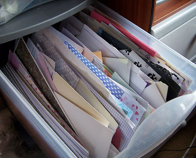 Well Jules, it looks somewhat better but I know what you mean...it's like they multiply in the drawer or something!!! Myself I only have 1 container but I don't make cards every day...just for family and friends and some baby albums now and again! AND being the cheapo girl that I am, I always look in my snippets before cutting into a new piece of paper:)