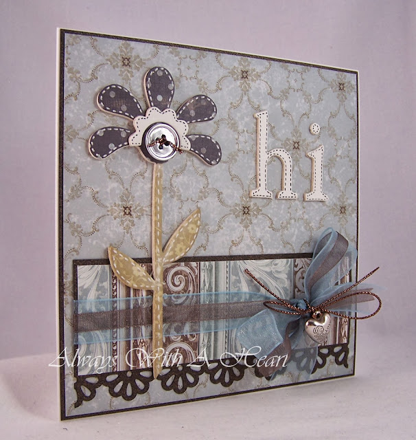 Gorgeous card, love the colour mix and the image and the 'hi'