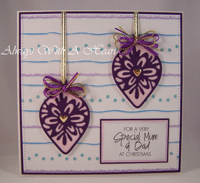 What fabulous colours and love the baubles, the rich purple looks stunning, great sentiment fonts.