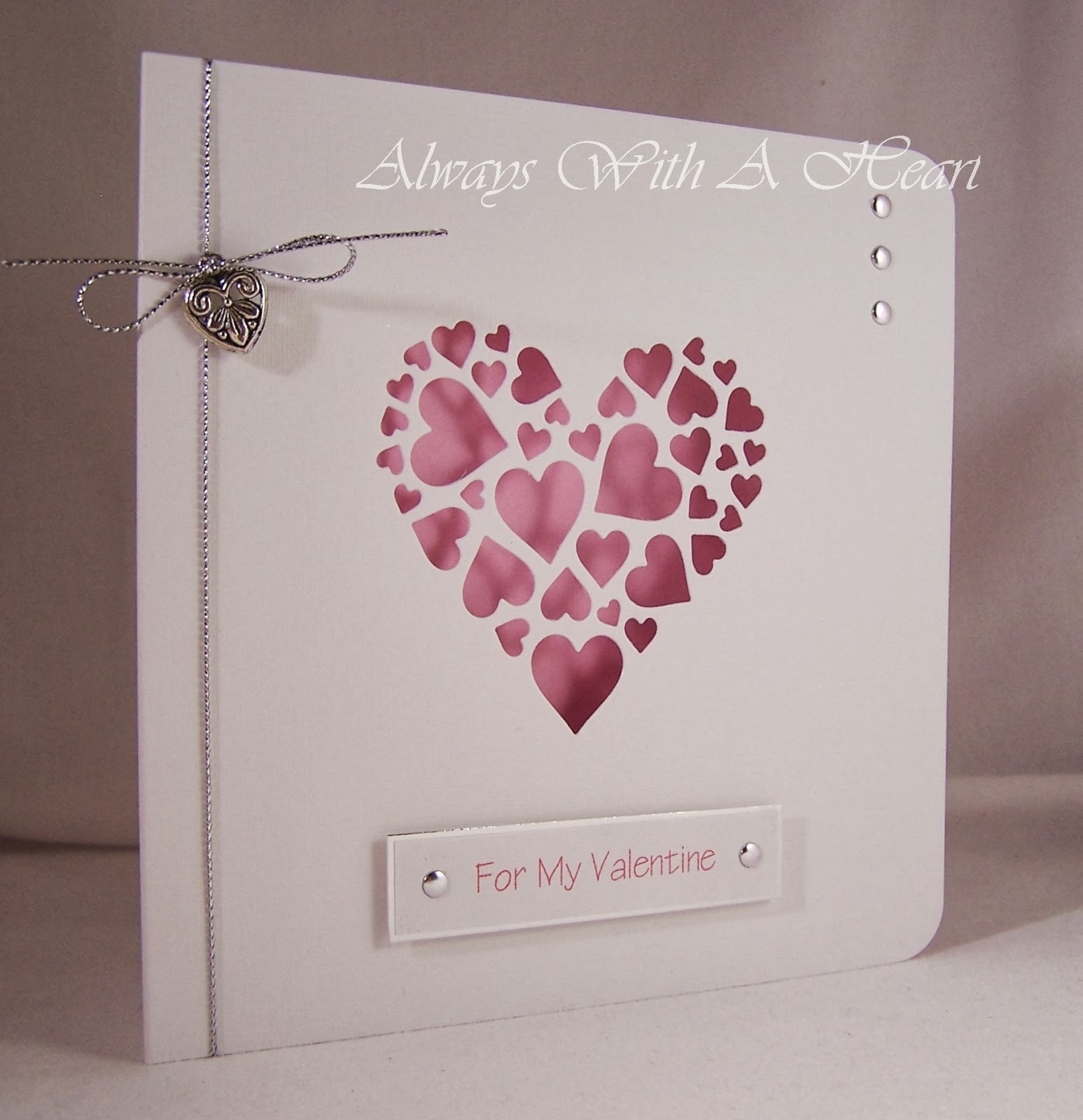 Ooh this is gorgeous Jules… I love the effect of the pink showing through the heart… so pretty… and the twine and naiheads finish the card off beautifully! :-)