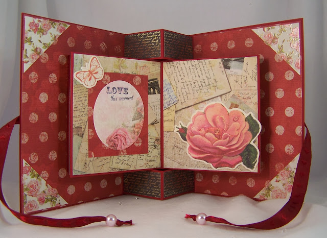 I love your book fold card, its gorgeous and I love the vintage red/rose papers!