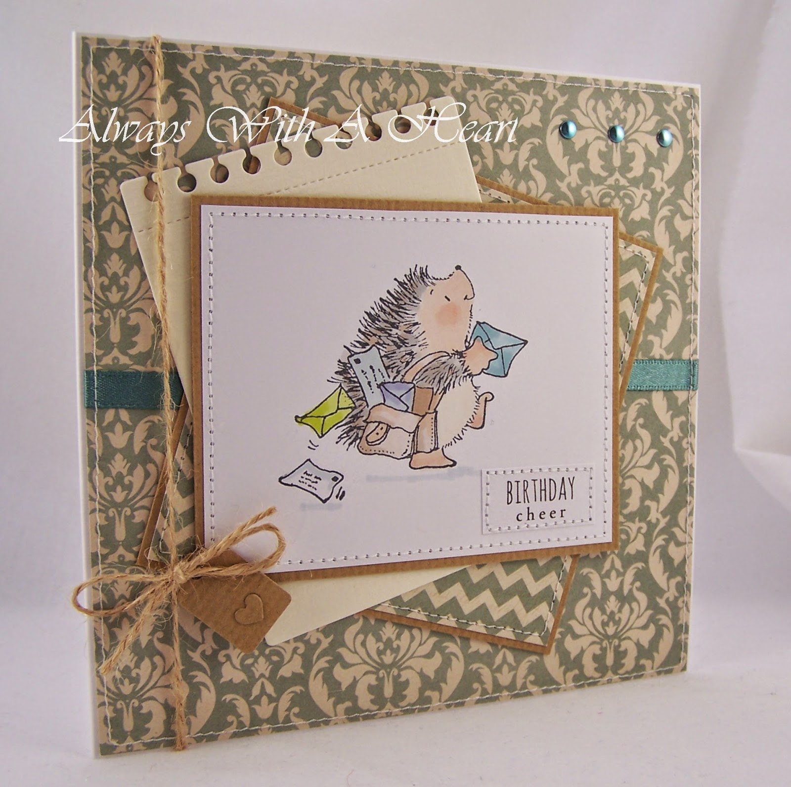 Awww, this is adorable Jules! I love that little mail carrier hedgehog, he is just too cute! Love that paper too and I just love looking for your hidden hearts. This one was nice and hidden in the kraft color. Hugs