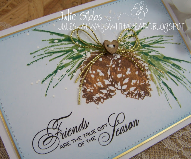 Gorgeous card Jules, that is one of my favourite PB christmas stamps and it's so useful for quick cards. Glad the appointment went well xx