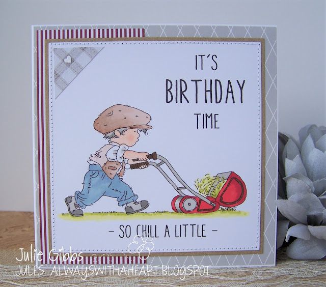 A lovely card Jules. I think this is my favourite out of the latest boy images from LOTV. I must admit I did search for the heart on your last card and couldn't find it! Have a good day x