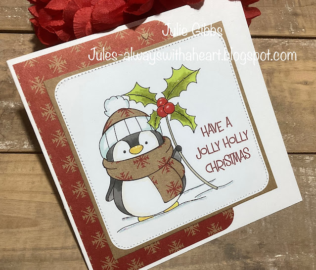 Such a cute little penguin with his sprig of holly…lovely card Jules